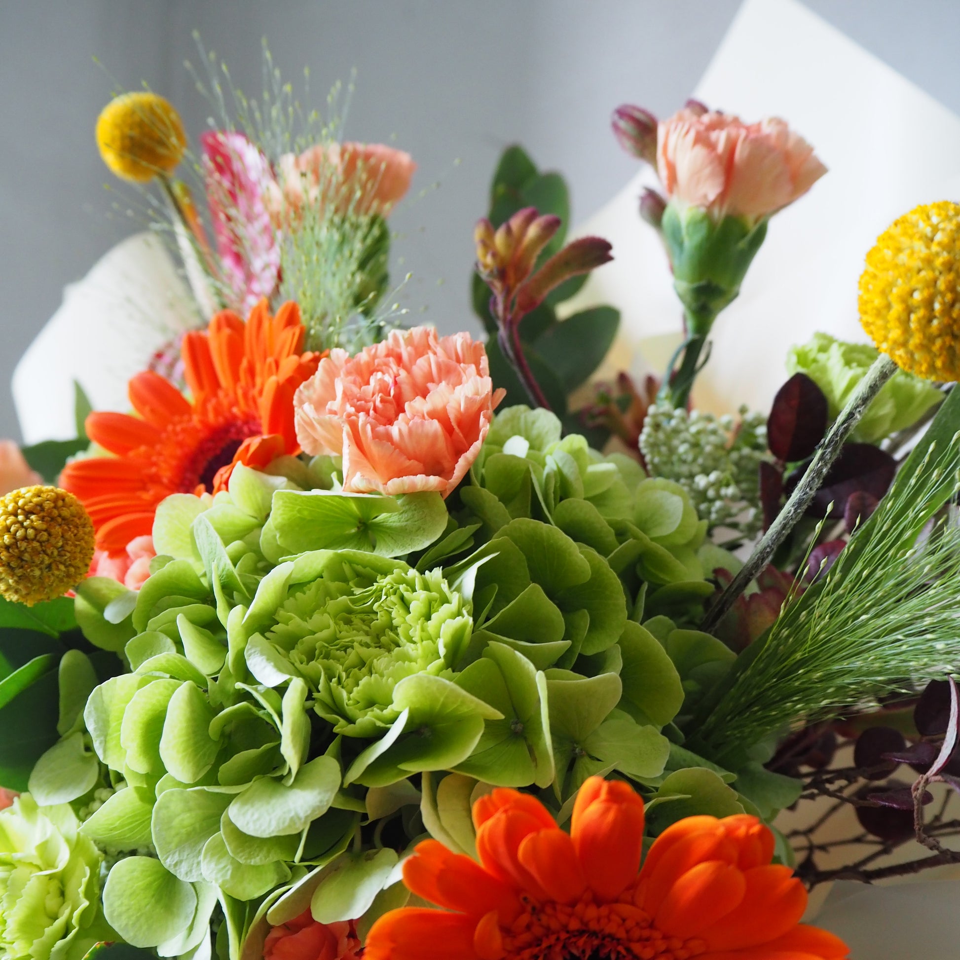 Paired with golden Dancing Lady orchids, airy blue delphinium, chrysanthemums, and lush hydrangeas, this bouquet offers a sophisticated alternative to the traditional rose. A celebration of texture and tone, it’s made for the discerning eye—ideal for birthdays, anniversaries, or moments that call for a touch of timeless beauty.
